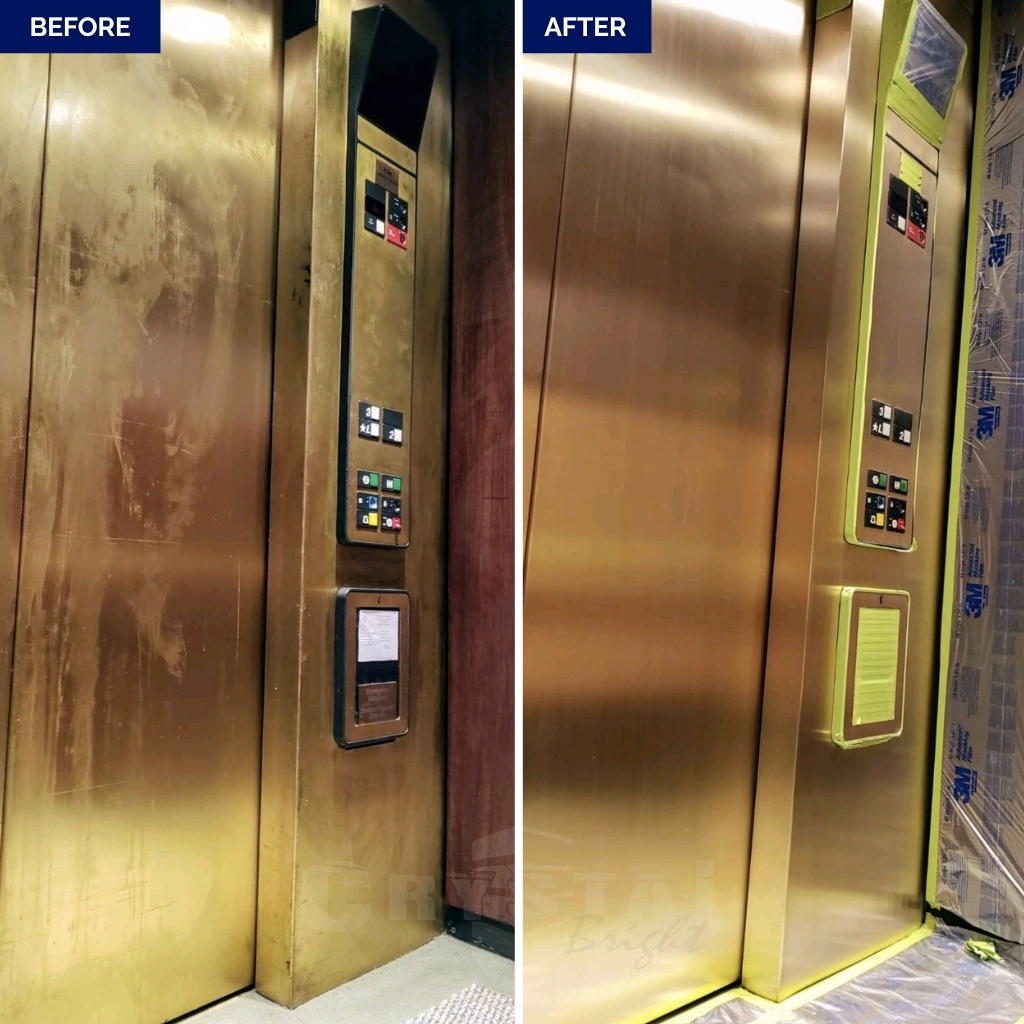 We manage at 25 year old 20 plus unit condo building and the brass elevator doors and finishes were all tarnished, faded, and stained from improper cleaning over the decades. Crystal Bright came in, did their thing, and now they all look brand new. Amazing. They also refinished the exterior door handles and anything else that has the same brass. Our building now looks like it did dayu one.